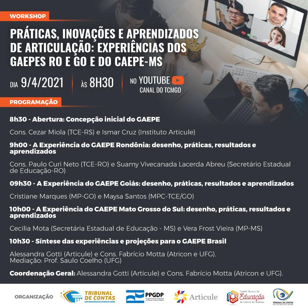 O evento será transmitido no canal do YouTube do TCMGO (Tribunal de Contas dos Municípios de Goiás) e terá a coordenação geral da presidente-executiva do Instituto Articule, Alessandra Gotti, e do conselheiro do TCMGO, Fabrício Motta.